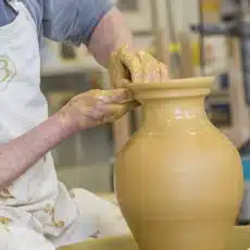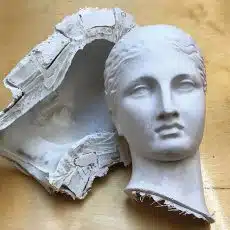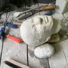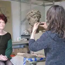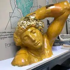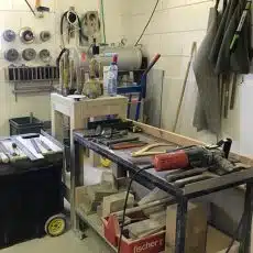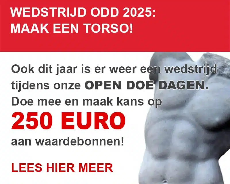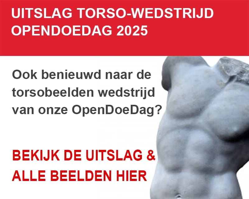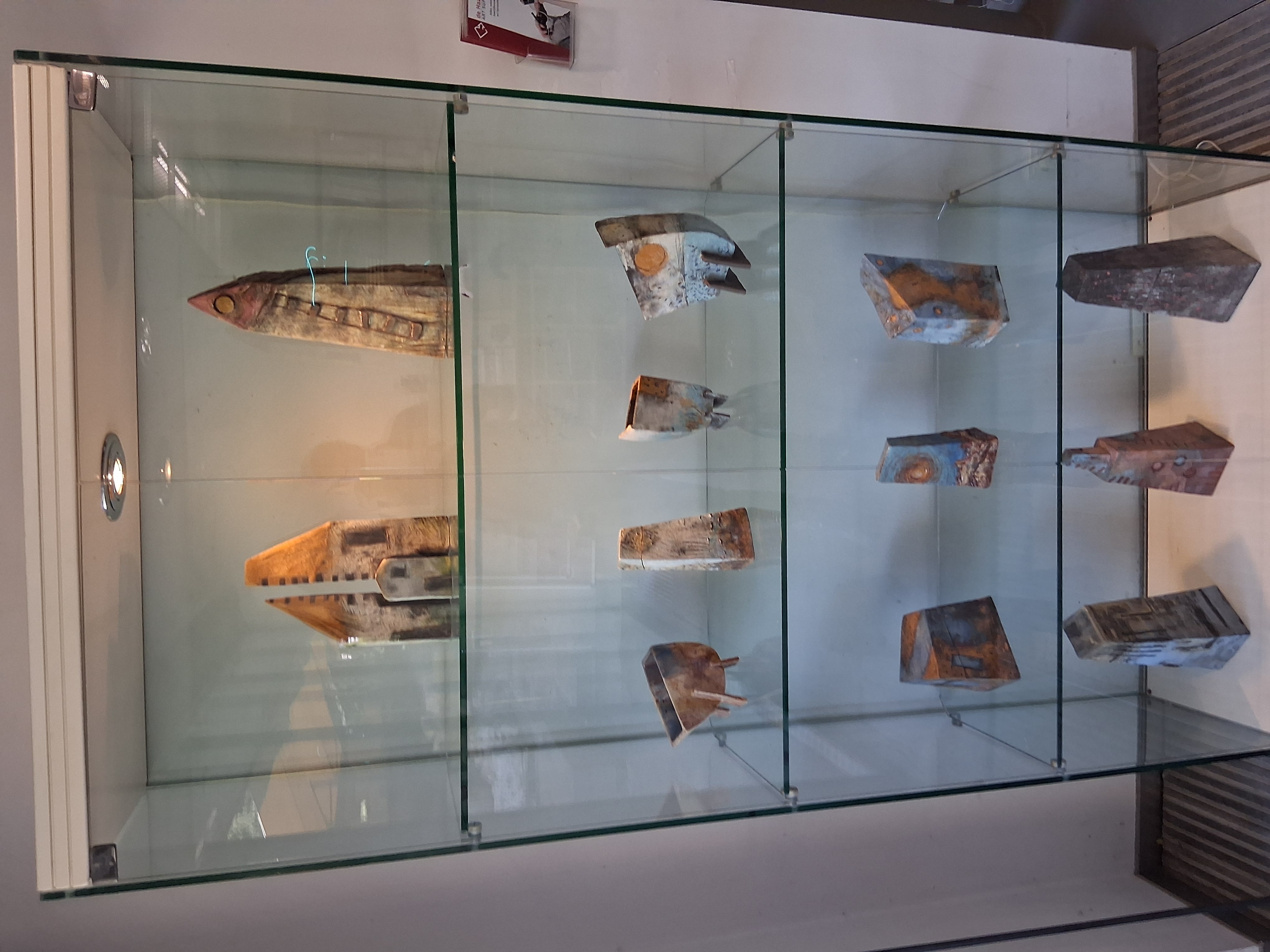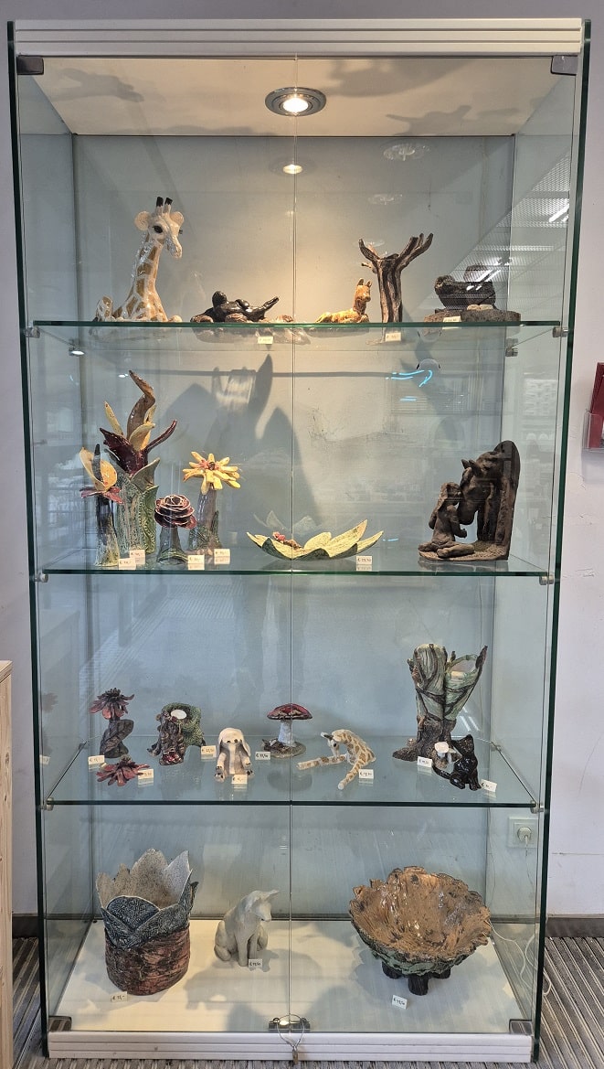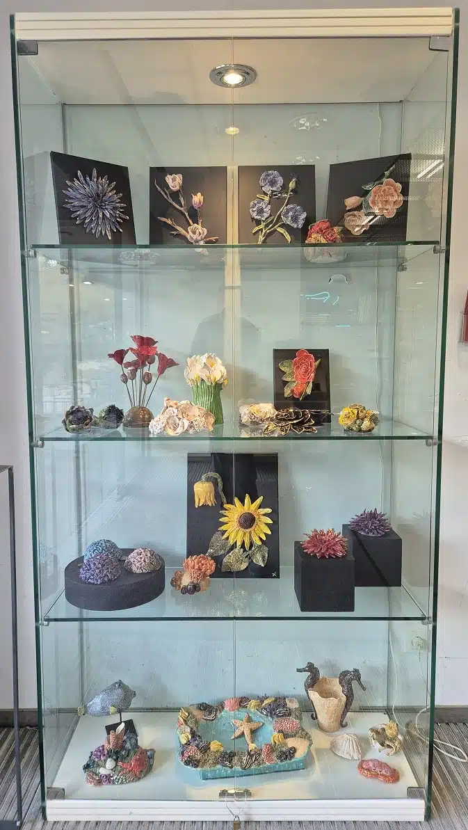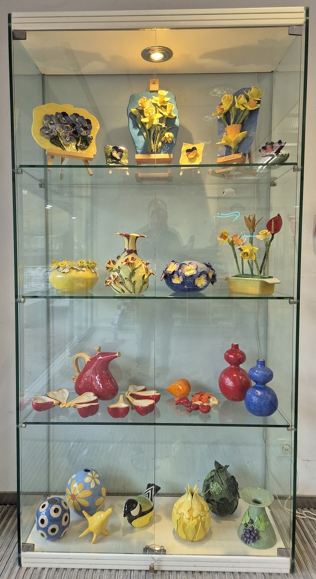 Bij de ingang van onze winkel in Soest staat een vitrine, waarin onze klanten hun werk kunnen tonen. Om de 4 weken wisselt de vitrine van werk.