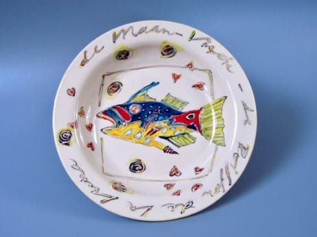 Tijdens deze workshop gebruiken we de omgekeerde glazuurmethode van Netty Janssens. Maar wat betekent deze techniek precies? Je maakt zelf inglazuurverf met keramische kleurpigmenten en schildert hiermee op de droge glazuurlaag. De kleuren veranderen niet tijdens het bakken; je ziet dus vooraf precies het eindresultaat van je schilderwerk.
