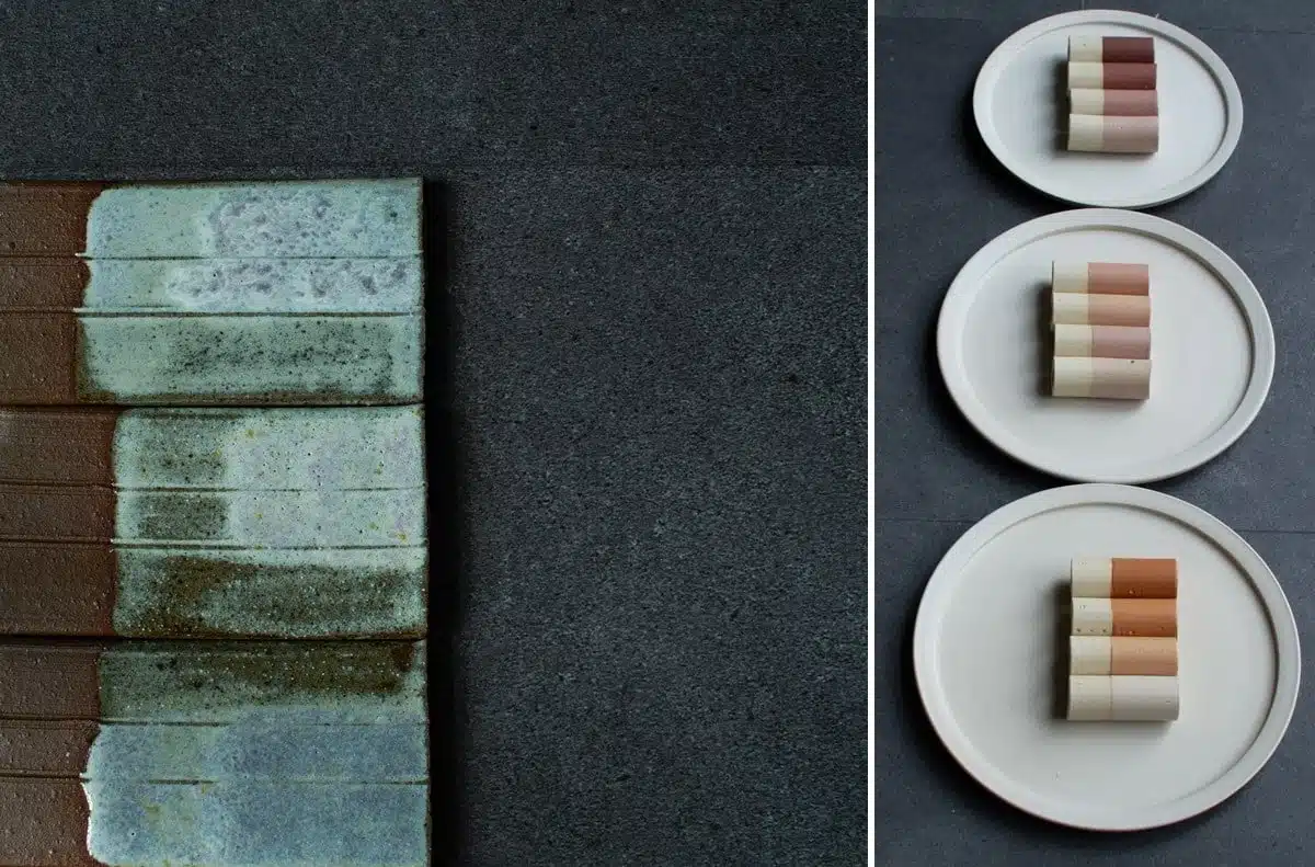We gaan de glazuren aanbrengen op wit bakkende en op rood bakkende klei, om aan te tonen dat de ondergrond van grote invloed is op het glazuurresultaat. Deze biscuit gebakken tegels liggen voor je klaar. De glazuren die we maken zijn steengoedglazuren, elektrisch gestookt op 1220 graden. Maximale duurzaamheid tegen bescheiden stookkosten.