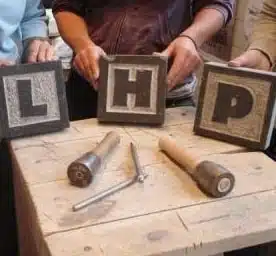 Onder begeleiding van Jan Herbrink zul je, na een korte introductie, een zelfgekozen letter in hoog reliëf hakken in Belgisch hardsteen. Je leert omgaan met een beitel en klopper en werkt allemaal aan een beeldhouwersbok.