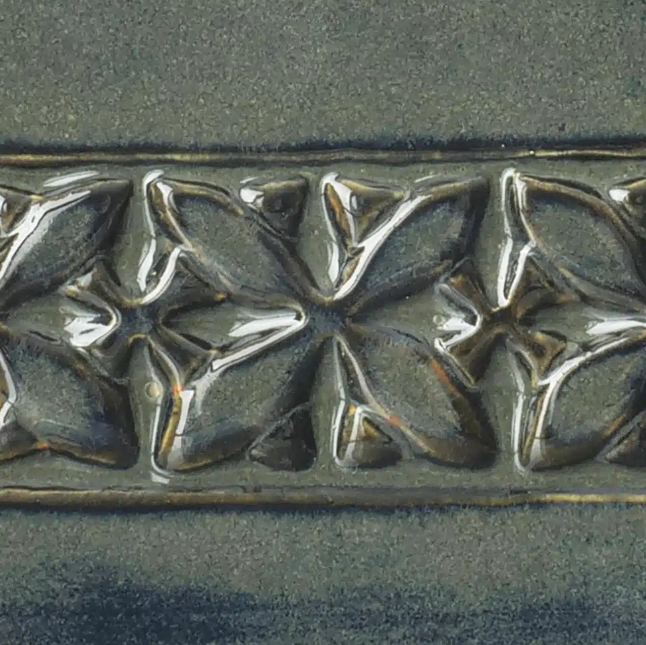 De zanderige, donkerbruine tinten van River Rock gaan over in een prachtig ebbenhout voordat ze in rijk amber uitbarsten wanneer ze over textuur worden aangebracht. Subtiele groengrijze honingraatvormen verschijnen onder de amberbreuken wanneer dit glanzende glazuur op verticale oppervlakken wordt aangebracht.