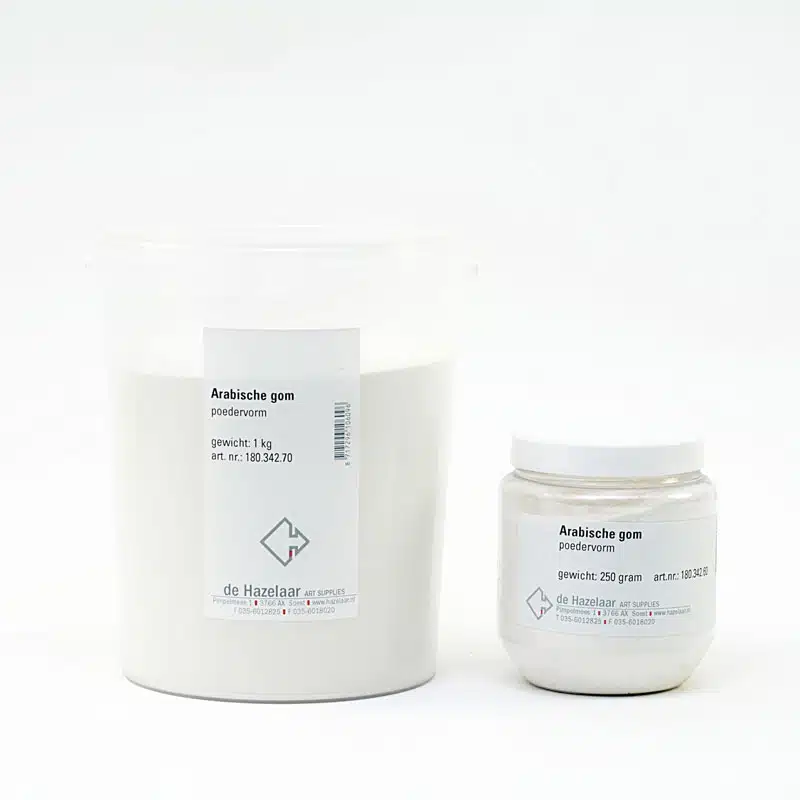 Arabisch gom is o.a. oplosbaar in water (3-5 dagen wachten). Na toevoeging van een klein beetje glycerine wordt de vloeibaarheid verbeterd.