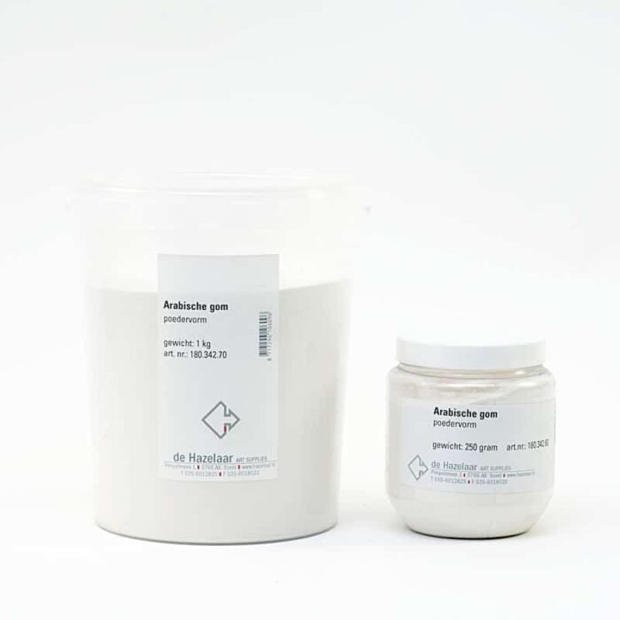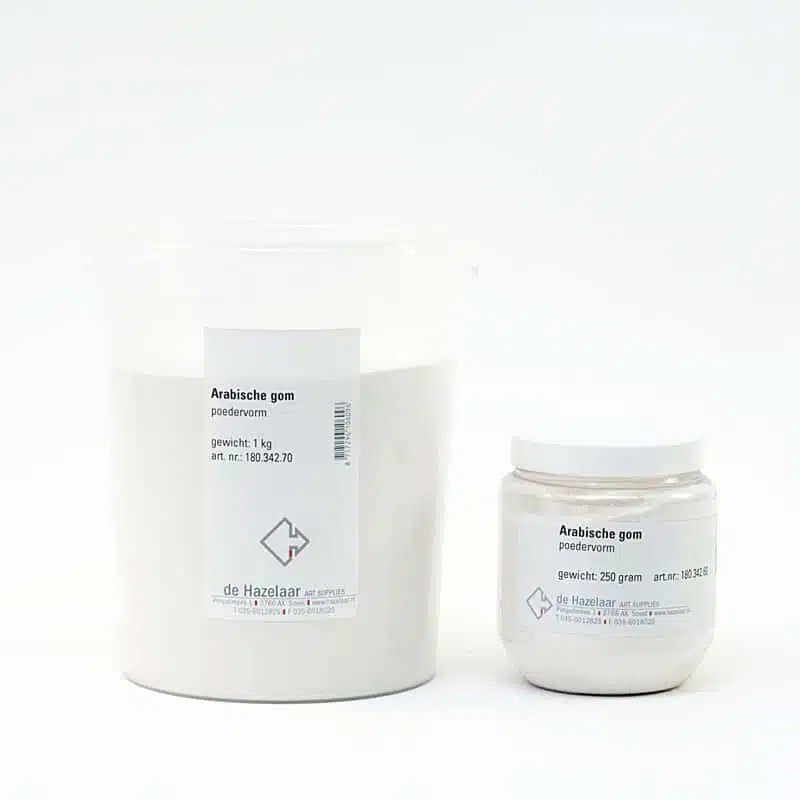 Arabisch gom is o.a. oplosbaar in water (3-5 dagen wachten). Na toevoeging van een klein beetje glycerine wordt de vloeibaarheid verbeterd.