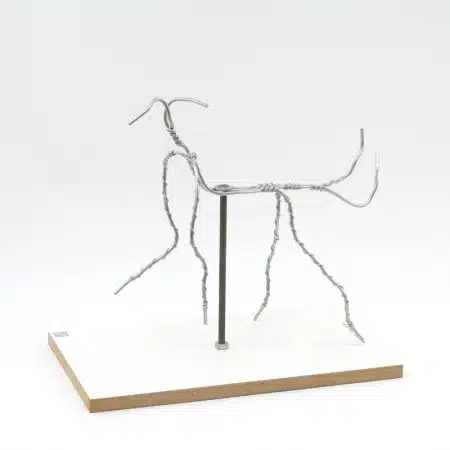 Volledig vervormbaar aluminium frame aan een stalen standaard op een houten onderplaat. Uitstekend geschikt als basis voor het creëren van een dierfiguur van plastiline, boetseerwas of klei.