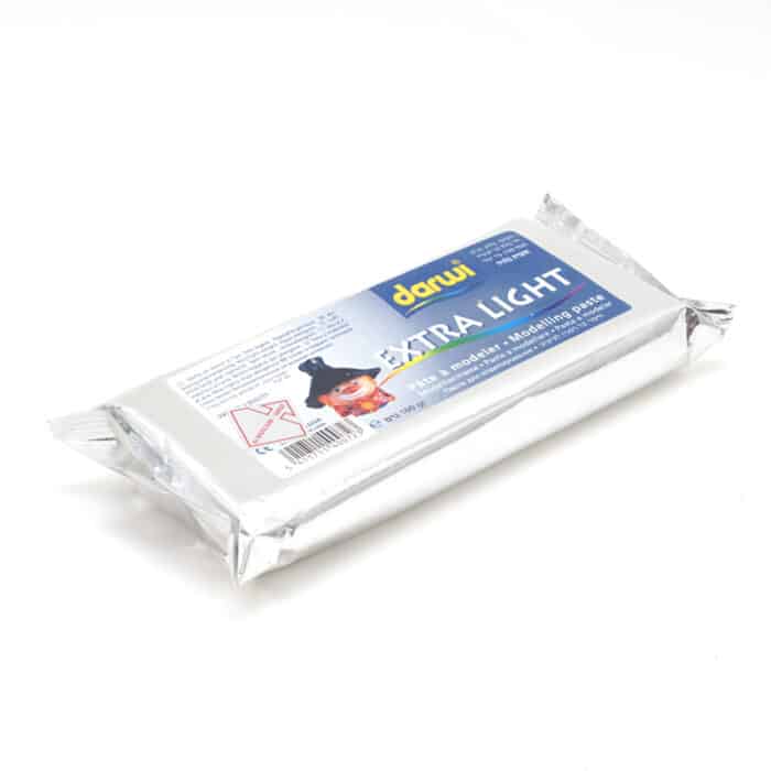 Darwi EXTRA LIGHT is een witte, zelfhardende, crème-kleurige modelleermassa, ookwel kunstklei genoemd. Deze modelleerpasta’s harden uit aan de lucht in ca. 24 uur.