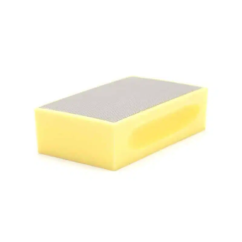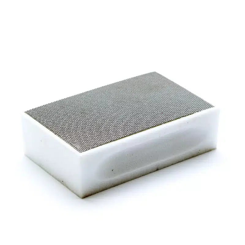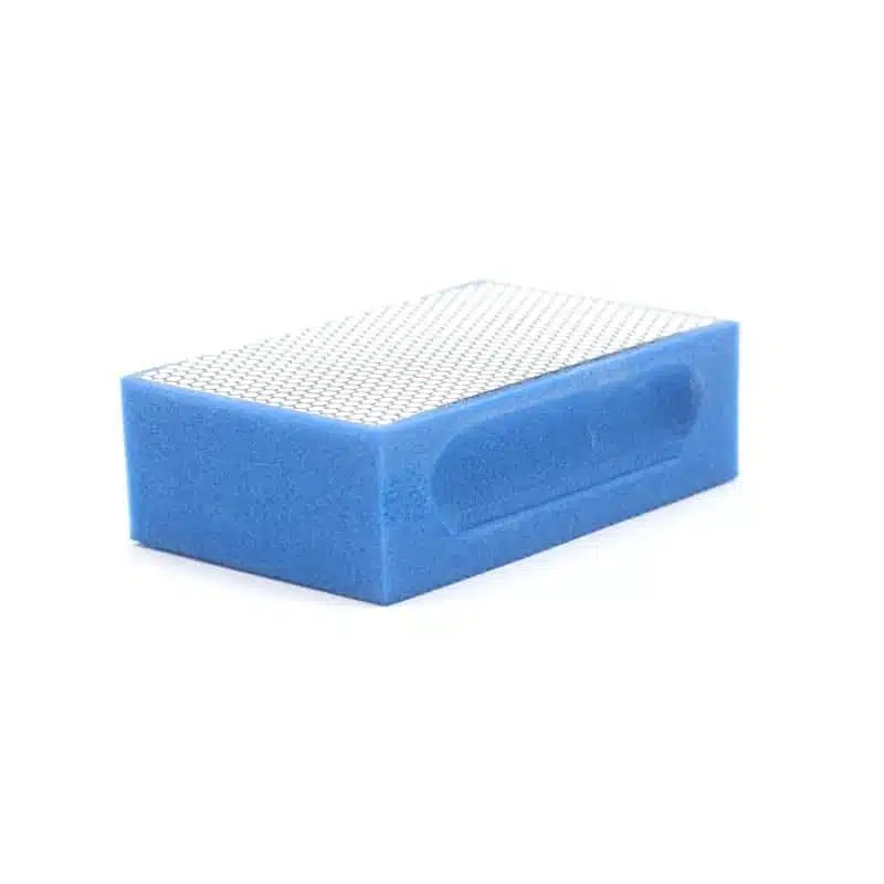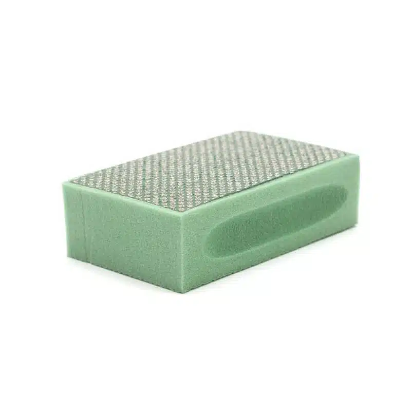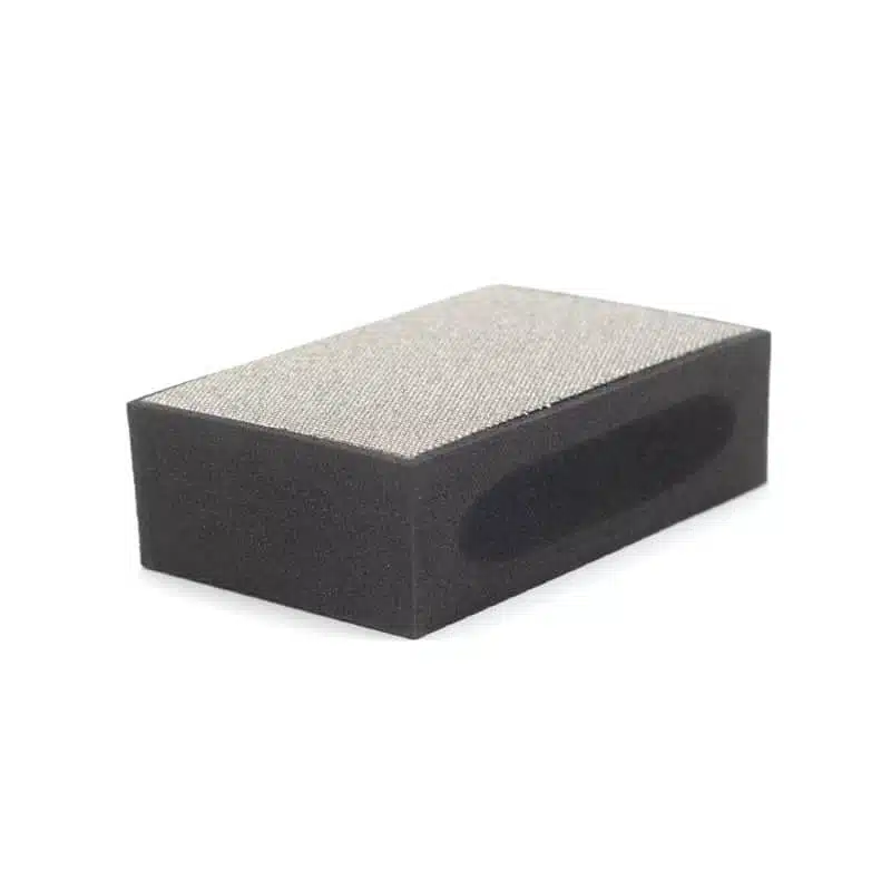 Het oppervlak is 90×55 mm en de schuimlaag is 25 mm dik, waardoor het makkelijk in de hand te houden is en toch redelijk flexibel blijft. Dit type pad is aan één kant volledig bekleed met diamant.