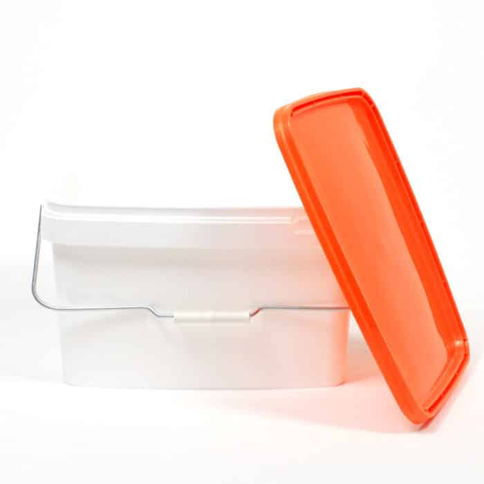 De emmer wordt geleverd met een witte deksel(geen oranje)