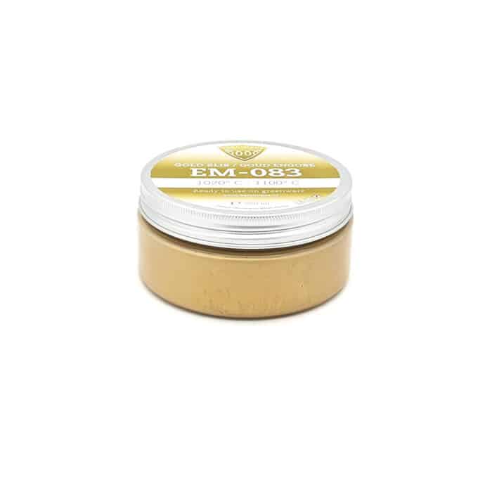 De goud engobe kan na de biscuitstook worden geglazuurd met een transparant glazuur. Het pure goudeffect gaat hierdoor wel verloren en de engobe pakt dan meer okerkleurig uit.