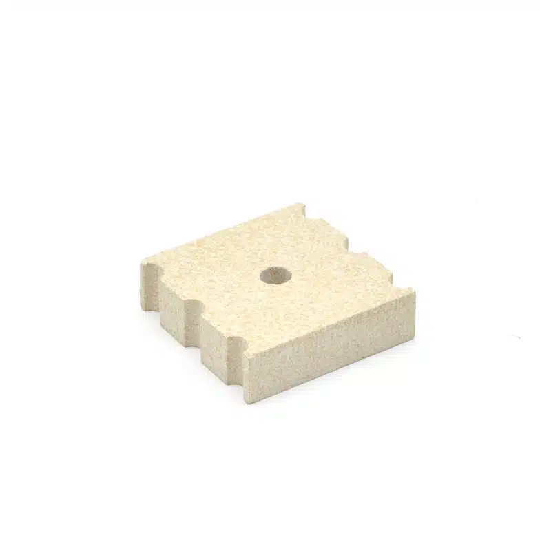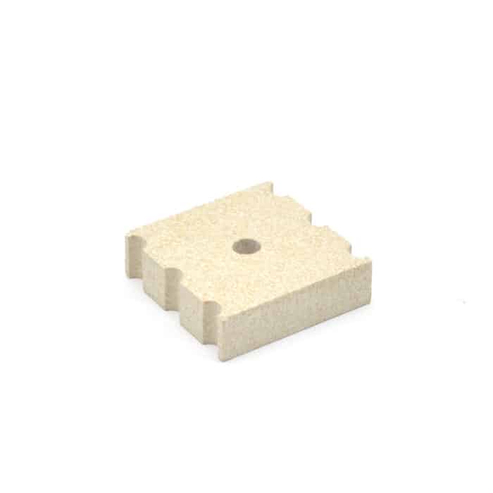 Keramisch plaatje met een sparing van Ø 10 mm, waarin een keramisch buisje kan worden gezet.