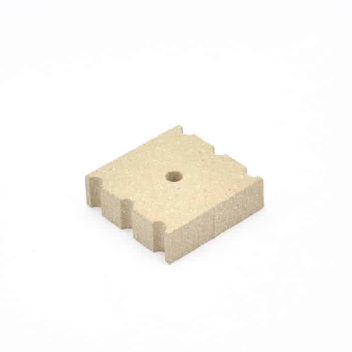 Keramisch plaatje met een sparing van Ø 8 mm, waarin een keramisch buisje kan worden gezet.