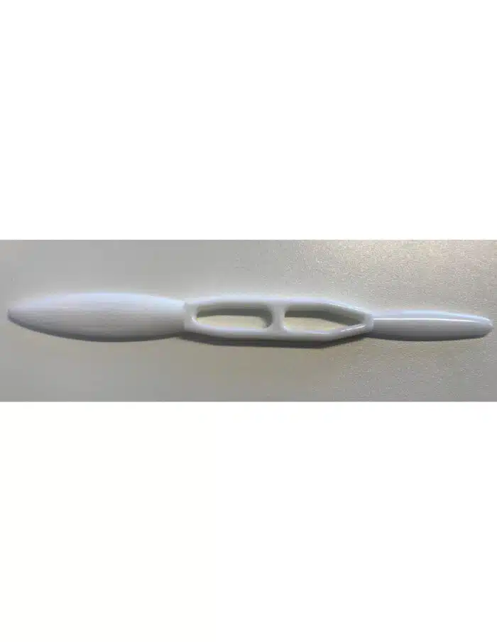 Tweezijdig, speervormig plastic instrument voor het verwijderen van naden na het gieten met gietklei.