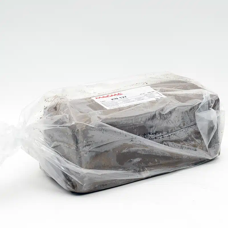 De Magma KN127 is een zwartbakkende boetseerklei met fijne chamotte en wordt geleverd in een verpakking/brood van 10 kg.