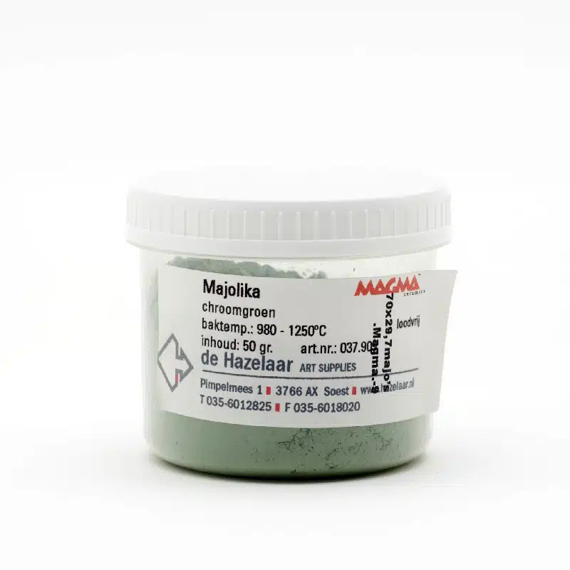 Magma Majolika wordt gebruikt voor het beschilderen van biscuitgebakken klei en wordt ook gebruikt voor zowel onder- als opglazuur. De poeder kan worden aangemaakt met Malmedium M10(art.nr. 035.865.50).