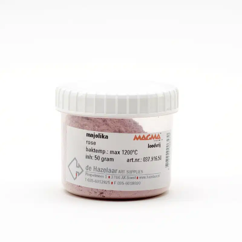 Magma Majolika wordt gebruikt voor het beschilderen van biscuitgebakken klei en wordt ook gebruikt voor zowel onder- als opglazuur. De poeder kan worden aangemaakt met Malmedium M10(art.nr. 035.865.50).