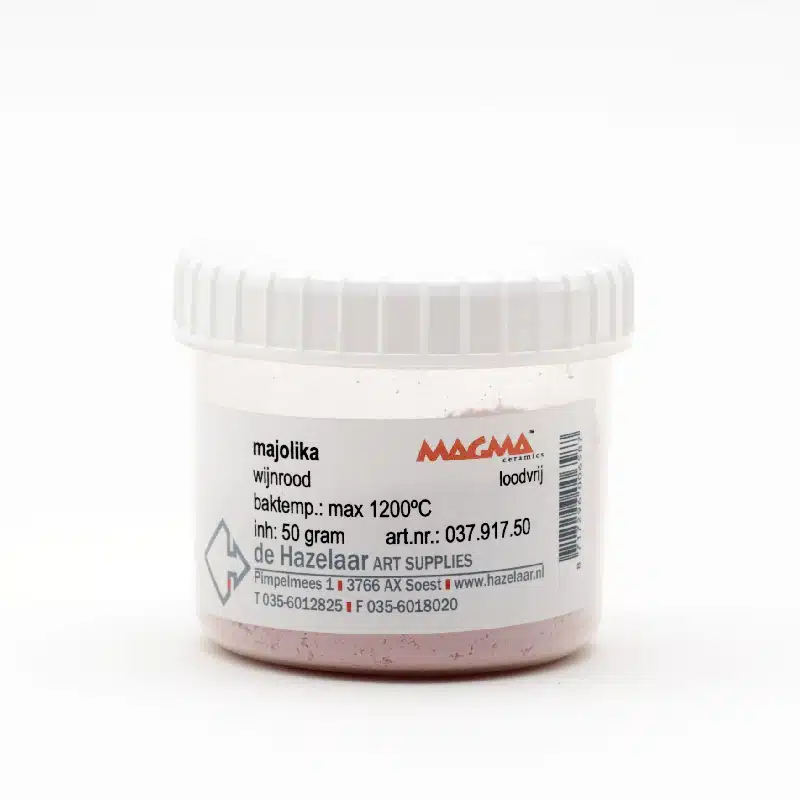Magma Majolika wordt gebruikt voor het beschilderen van biscuitgebakken klei en wordt ook gebruikt voor zowel onder- als opglazuur. De poeder kan worden aangemaakt met Malmedium M10(art.nr. 035.865.50).