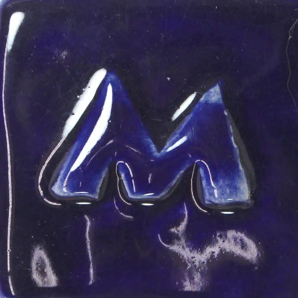 Op rood- en zwartbakkende klei donkerblauw kleurend.