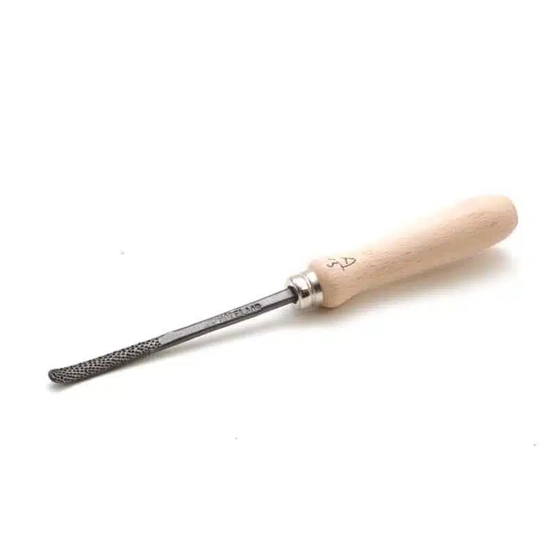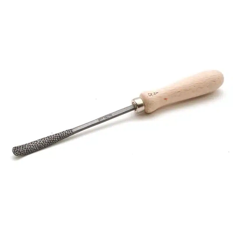 De handgesmede en handgekapte rasp is voorzien van een houten heft en wordt geleverd in de maat 15 of 25 cm. De rasp is geschikt voor het bewerken van zachte en middelharde steensoorten en hout. Leverbaar in 5 modellen.
