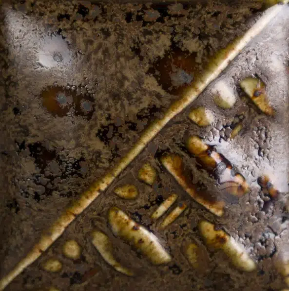 Cone 6: Black Timber is een satijnachtig, ondoorzichtig, gevlekt bruin glazuur dat breekt over de textuur. Bevat glanzende bruine kristallen. De basiskleur is stabiel, kristallen kunnen beweging creëren.