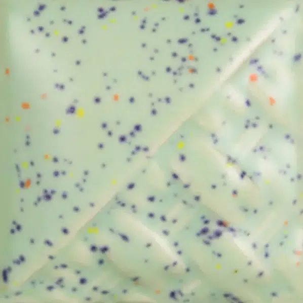 Cone 6: Mint Speck is een satijnmatte, halfdekkende mintgroene kleur die breekt over de textuur. Bevat kleine paarse, oranje en gele spikkels. Dit glazuur is zeer stabiel.