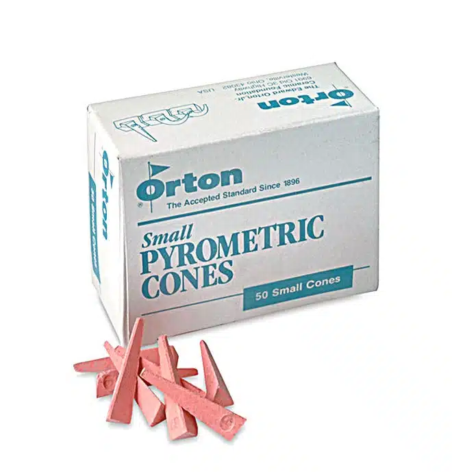 Orton cones zijn smeltkegels die onder invloed van warmte en tijd doorbuigen. Je kunt ze gebruiken om de temperatuur in je oven (op verschillende plekken) na te gaan. Cones worden genummerd van 022 (lage temperatuur) tot 42 (hoge temperatuur). Afhankelijk van hoe snel je een keramiekoven opstookt in graden per uur, zal een cone snel en veel of langzaam en weinig doorbuigen.