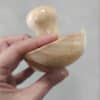 Met een mushroom tool of anvil tool kun je razendsnel een halfronde vorm of een kom of schaal maken. Rol een plaat klei uit en leg die op een zachte ondergrond. Druk de mushroom tool erin en je hebt meteen een omgekeerde afdruk van de tool. Je hoeft enkel nog de randen bij te werken.