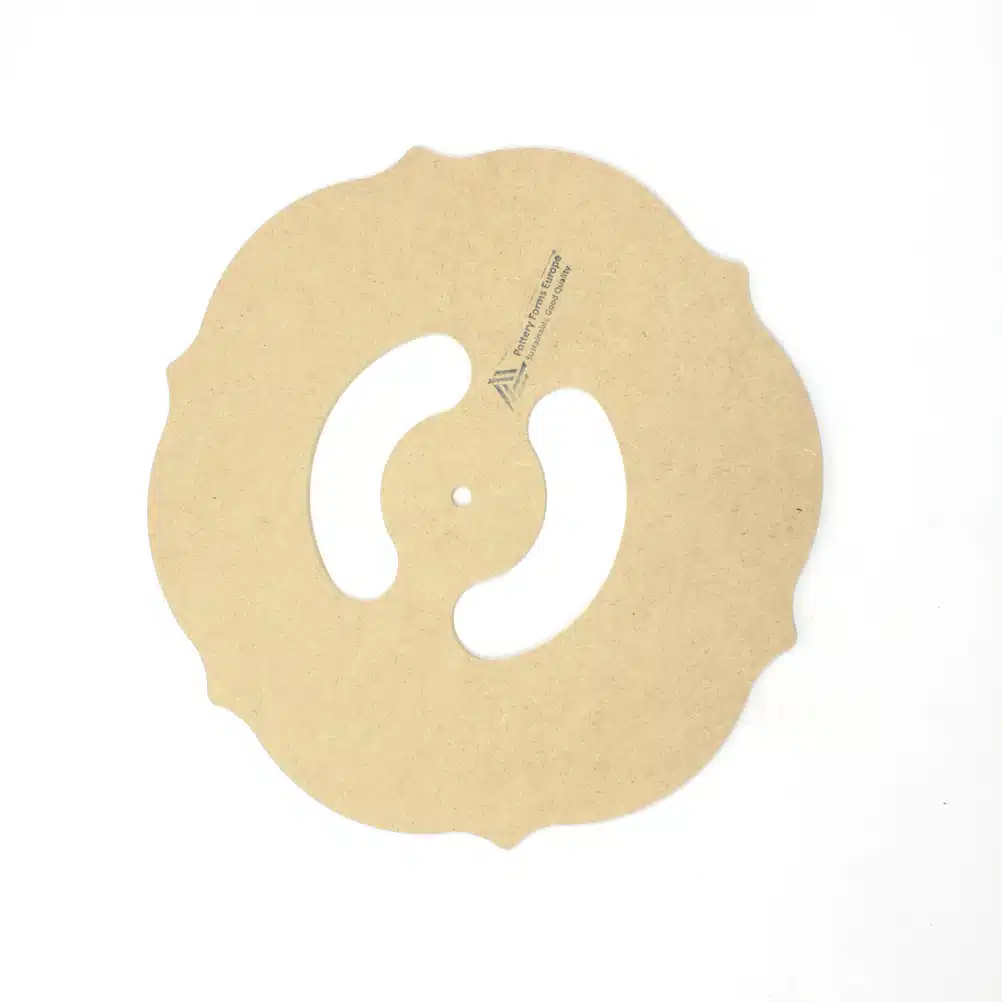 Rim sjabloon r4 12.5 inch. Creëer een decoratieve bord- of schaalrand door gebruik te maken van een Rim sjabloon. Kan zowel los als op het Wheel attachment systeem gebruikt worden.