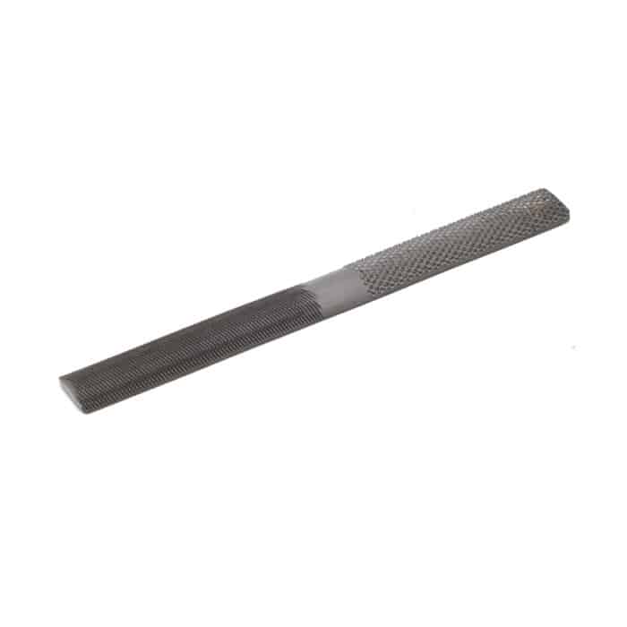Vlak en halfrond; zgn. schoenmakersrasp/-vijl. Geschikt voor het bewerken van hout, speksteen, albast, kalksteen en marmer etc.