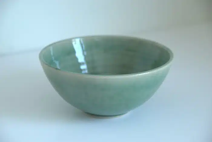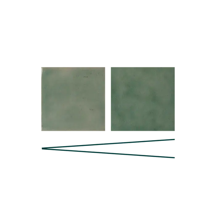Glanzend, transparant groen glazuur. Het glazuur wordt wat lichter groen als het dunner ligt en intenser van kleur wanneer het dikker is.