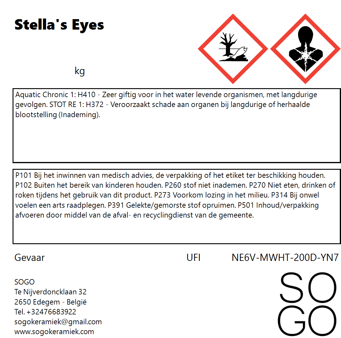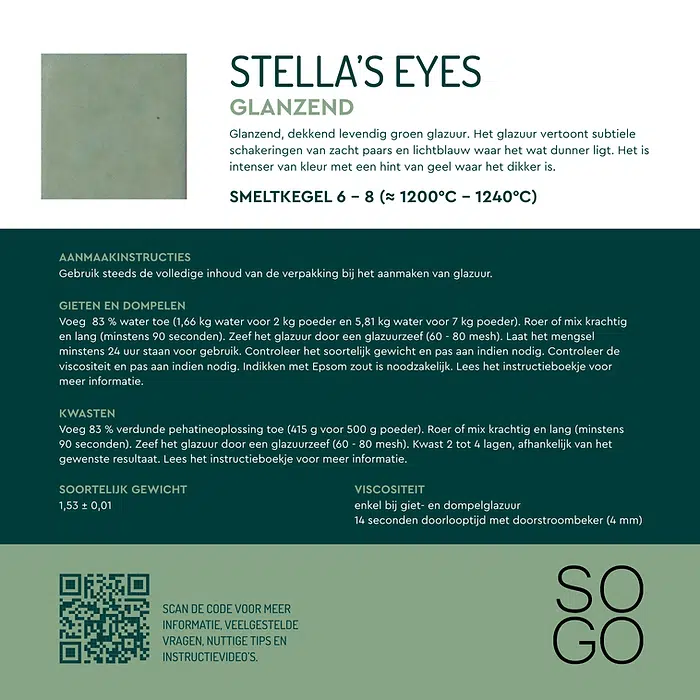 Stook de SOGO glazuren op smeltkegel 7 voor de beste resultaten. Soms kan het steengoedglazuur ook op smeltkegel 6 of 8 gestookt worden. Dit staat aangegeven op het etiket.