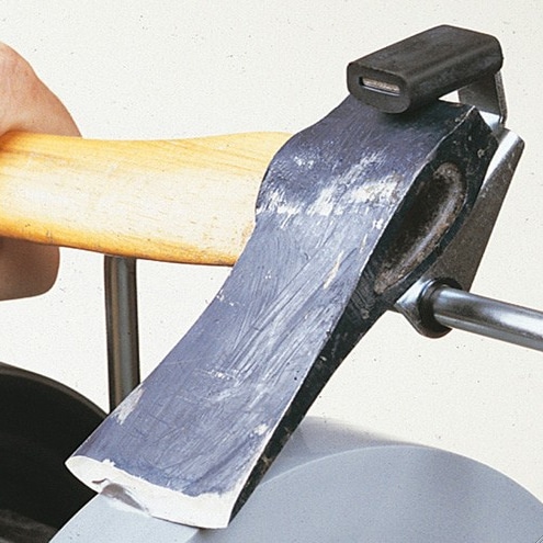 De SVA-170 slijpmal is ontworpen voor het slijpen van allerlei soorten bijlen. De rotatie van de slijpsteen maakt dat de bijl stevig in de mal wordt gedrukt zodat er automatisch voldoende kracht wordt uitgeoefend en u zelf de volledige aandacht kunt richten op het aanhouden van de vorm van het snijvlak. De slijphoek kunt u zelf volledig bepalen, afhankelijk van welk type bijl u gebruikt.