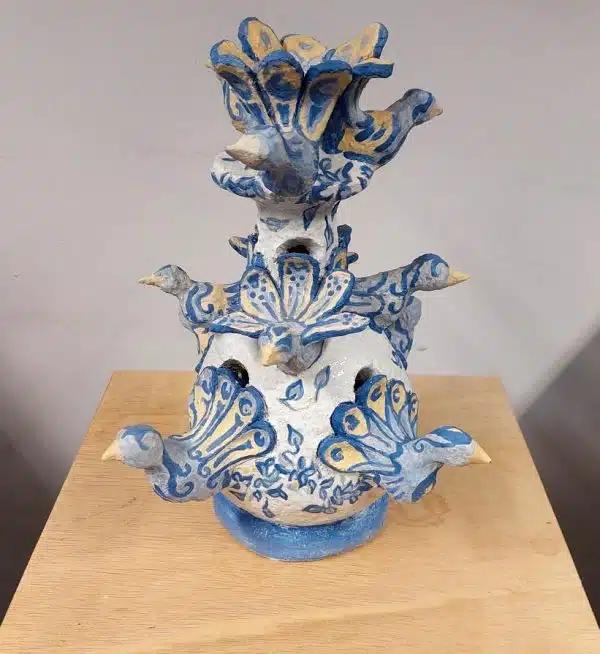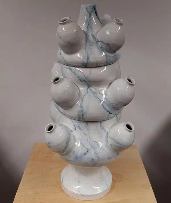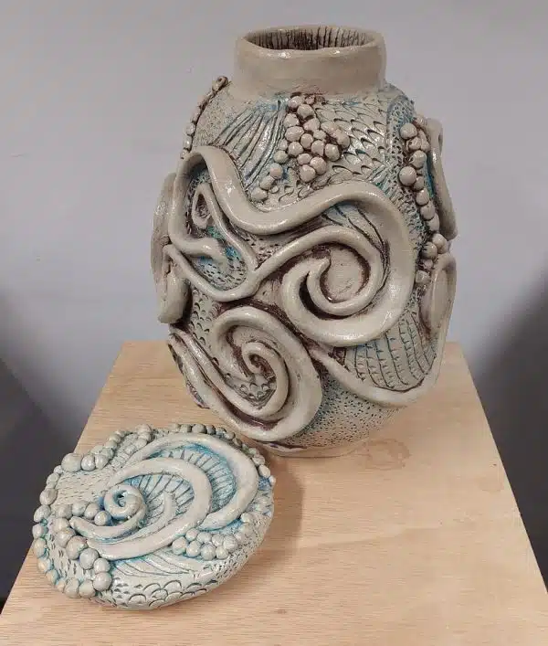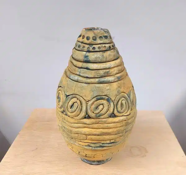 Voor onze Opendeurdag op 14 oktober 2023 hebben we een vaaswedstrijd gelanceerd. De spelregels waren simpel: iedereen mocht meedoen, de vaas moest van afgebakken klei zijn en minimaal 20 cm hoog, geglazuurd of ongeglazuurd, met eender welke decoratietechniek die je maar kunt bedenken. Iedere bezoeker van de Opendeurdag kreeg een stemformulier en kon geheel naar eigen inzicht stemmen uitbrengen voor zijn/haar eigen top 3. Het was een daverend succes en er is volop gestemd, meer dan 350 stemformulieren zijn er ingeleverd! Hieronder tref je afbeeldingen van alle deelnemende vazen en de winnaars van deze publieksprijs.